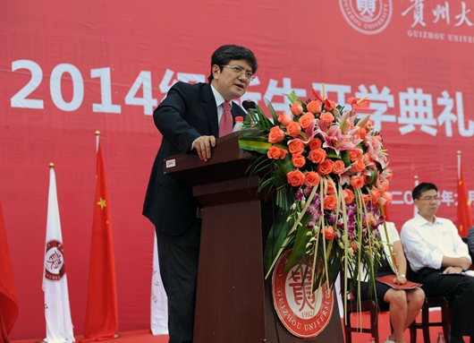贵大新闻网讯(对外合作处 刘治军)9月12日,我校郑强校长率校办、对外合作处负责人出席“2014浙商贵州行暨贵州省浙江商会十周年庆典”。 在当天的庆典活动上,贵州省浙江总商会向贵州大学教育发展基金会捐赠了100万元,郑强校长接受捐赠,并发表即兴演讲,他说,贵州大学的发展离不开社会各界的支持,今天我仅代表贵大6万余师生对贵州省浙江总商会的善举表示感谢,同时也感谢长期以来对贵州大学给予关心、支持和帮助