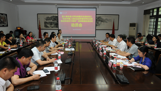 据悉,今年全省大学生校园文化活动月,我校将具体承办“纪念中国人民抗日战争暨世界反法西斯战争胜利70周年”诗词朗诵巡演和大学生器乐合奏比赛等2项活动;组织师生参加感动校园十大人物评选活动,“弘扬宪法精神•建设法治中国”网络知识竞赛、现场知识竞赛、征文比赛,“弘扬中华优秀传统文化和践行社会主义核心价值观”摄影大赛、微视频大赛,“校园好声音”歌唱大赛,大学生校园足球比赛等8项活动。
