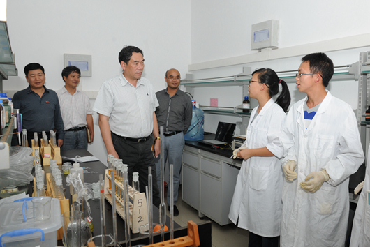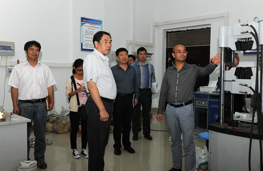 下午2点半,陈坚书记一行来到资源与环境工程学院,听取资环学院院长吴攀对学院发展史、学科渊源、学生培养、科研、特色方向、学生就业、组织机构、学院机制、“资环心”发展愿景等方面的汇报,询问学院与地化所之间的合作关系以及乌当野外实验基地的具体情况。谈到个人考核与团队考核并行机制时,陈坚书记表示,现在提倡国家治理体系与治理能力的现代化,贵州大学就要提倡学校治理体系与治理能力的现代化。参观过程中,陈坚书记看到整齐的休息处、办公室时夸奖到“要组织观摩这种好的管理方式”。陈坚书记还参观了化学与环境检测中心、正夏检测中心、校友会和实验室。
