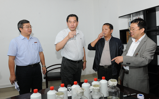 边走边看,兴致盎然。陈坚书记来到酿酒与食品工程学院,他特别关心在全国独具优势的贵州省特色专业酿酒专业的建设情况,详细了解了酿酒专业的师资力量、学生就业前景、与贵州省经济社会贴近度等情况。陈坚书记听取了酿酒与食品工程学院院长邱树毅对学院“纯风行动”具体情况的汇报,在白酒品评实验室时品尝了自酿的酱香型白酒和药酒。