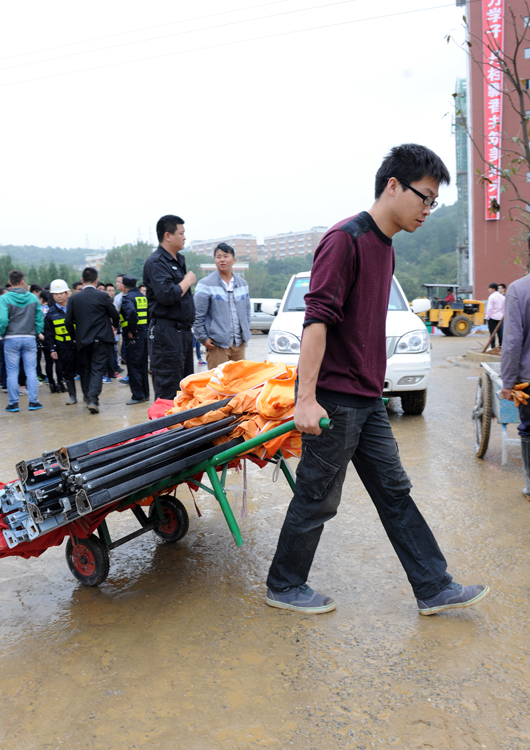 ►学生志愿者安装标识、搬运七彩阳明的帐篷
