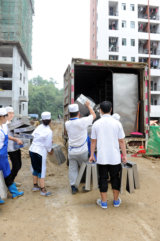 ►食堂叔叔阿姨搬运食材