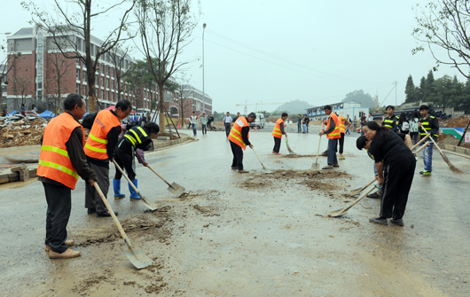 ►工人们清理路面
