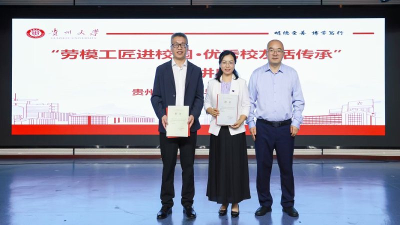 支启军副校长为陆萍、张伟两位校友颁发了贵州大学学生职业生涯规划与就业指导校外导师聘书。