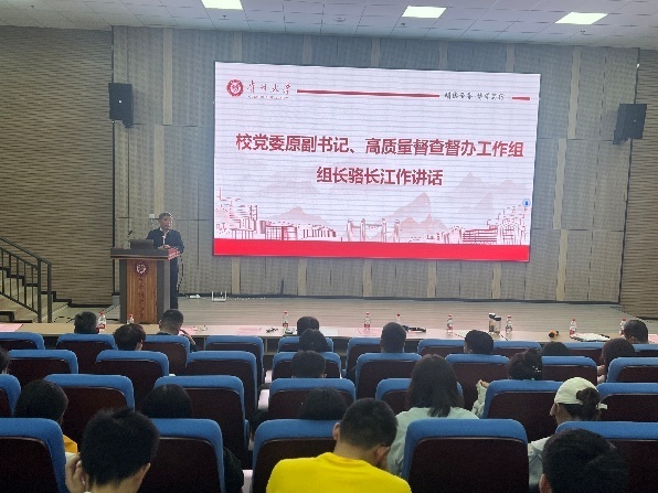 校党委原副书记、高质量督查督办工作组组长骆长江在讲话中,从政治监督、责任落实、工作实效三个维度提出明确要求。他强调,各单位要提高政治站位,强化责任担当,以高质量督查督办推动各项工作落地落细;要坚持问题导向,聚焦学生需求,不断优化服务保障体系;