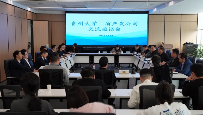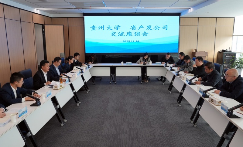 贵大新闻网讯(通讯员 杨卿 学生记者 张立敏)11月14日下午,贵州大学与贵州省产业发展有限公司座谈交流会在观山湖区召开。贵州省产业发展有限公司党委副书记吴晓楠,贵州大学党委副书记张大林、副校长支启军出席座谈会。