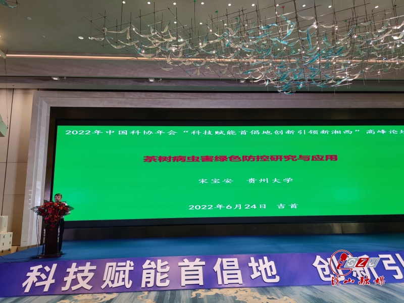 6月24日,第二十四届中国科协年会分论坛“科技赋能首倡地 创新引领新湘西”高峰论坛在湖南省湘西州举办。贵州大学校长宋宝安院士参加论坛并作报告。在上午的专题报告会上,宋宝安作《茶树病虫害绿色防控与应用》报告。报告从“茶树病虫害发生危害状况”“茶树病虫害研究现状”“茶园病虫害防控技术集成示范”“茶园病虫害绿色防控工作小结”等方面,介绍了贵州茶园病虫害绿色高效防控技术体系,示范推广贵州经验。下午,宋宝安前往花垣县十八洞村调研乡村振兴工作,并走进农业产业化龙头企业、农业园区、生产基地考察调研,就湘西州茶叶等特色产业在品种培优、加工增值、品牌拓展等方面进行现场问诊把脉。第二十四届中国科协年会首次在湖南举办,其中“科技赋能首倡地 创新引领新湘西”高峰论坛由中国科协、湖南省人民政府主办,中国农学会、湖南省科协、湘西州人民政府承办,是年会系列活动中较早举办的一项重要活动。来源:贵州大学新闻网编辑:杨凤仙责编:陈思鱼