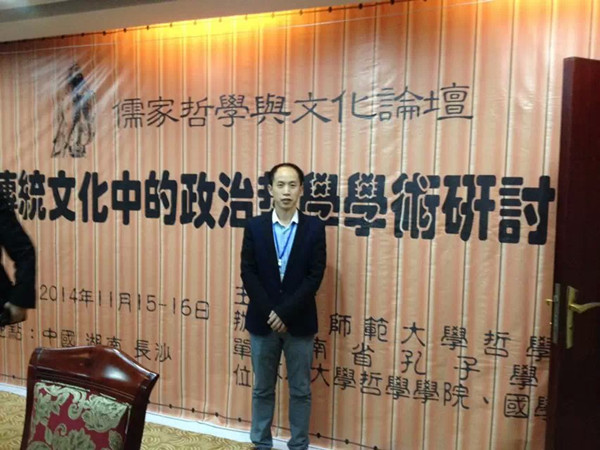 2014年11月14—16日,由湖南师范大学哲学系、武汉大学哲学院、武汉大学国学院、湖南省孔子学会共同主办,湖南师范大学哲学系承办的“儒家哲学与文化论坛——传统文化中的政治哲学全国学术研讨会”,在湖南师范大学著名的“红楼”会议中心召开。