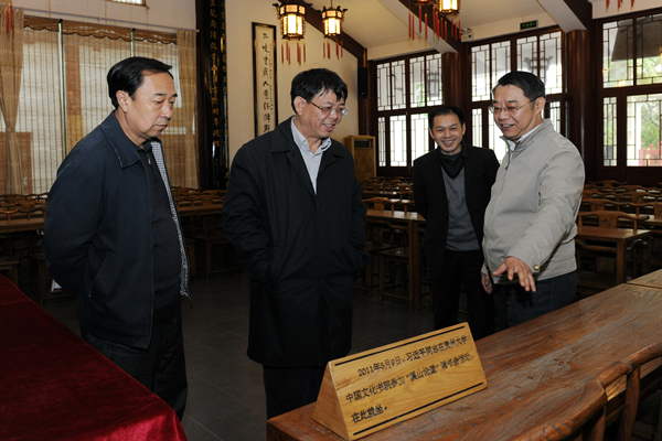 2015年3月23日,贵州省委教育工委、省教育厅全省普通本科高校、厅属高职院校2014年加快发展目标绩效考核组组长廖翼翔(省直目标办原专职正厅级副主任)、省教育厅法规处处长史开来,在贵州大学纪委汪海波书记陪同下参观中国文化书院。考核组领导参观了文化书院孔子铜像、勉学堂、游艺轩、励道楼、琴轩、合一亭、涵远读书楼、传习室及仁文厅等处,对贵州大学中国文化书院传承和弘扬中华优秀传统文化的作为表示赞许。贵州大学中国文化书院常务副院长张清教授陪同参观并介绍书院相关情况。