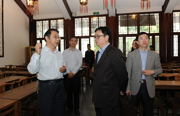 2015年4月16日,北京大学副校长李岩松教授、北京论坛常务副秘书长谷雪一行到中国文化书院参观。校办主任张大林、副主任刘颖陪同参观。中国文化书院常务副院长张清教授向李岩松副校长一行详细介绍了中国文化书院的情况。