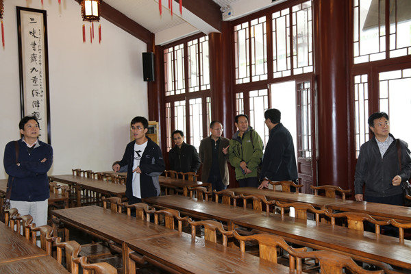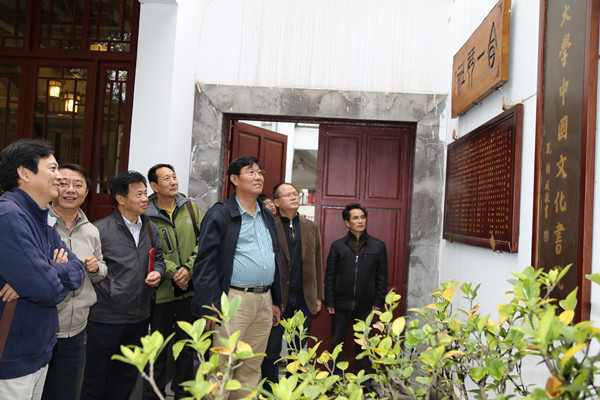 2015年4月24日,清华大学出版社社长、中国大学出版社协会理事长宗俊峰,对外经济贸易大学出版社总编(原社长)、中国大学出版社协会副理事长刘军,中国农业大学出版社社长、中国大学出版社协会秘书长汪春林,中国大学出版社协会常务副秘书长毕研林一行在贵州大学出版社社长闵军,副社长龚晓康陪同下参观贵州大学中国文化书院。中国文化书院张清常务副院长、刘振宁副院长带领客人参观书院孔子铜像、勉学堂、励道楼、涵远读书楼、仁文厅等处,详细介绍了中国文化书院的相关情况。