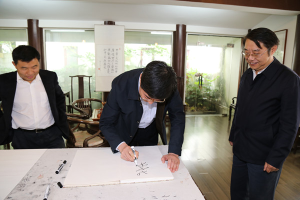 2015年5月12日上午,扬州大学党委副书记、副校长叶柏森及副校级调研员雍自成,率宣传部、学工部等部门负责人一行八人,在贵州大学党委副书记骆长江陪同下参观贵州大学中国文化书院。中国文化书院常务副院长张清教授、副院长刘振宁教授、副院长罗同兵副教授陪同客人参观孔子铜像、勉学堂、励道楼、涵远读书楼、仁文厅等处,并详细介绍了书院相关情况。