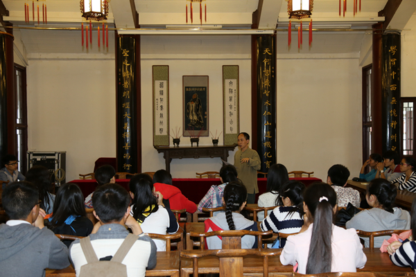 2015年5月22日下午,贵州大学中国文化书院青年教师邓国元博士,带领所兼职任课的贵州师范大学历史与政治学院2015级国学班的全体同学参访贵州大学中国文化书院,向同学们详细讲解书院传统文化的丰富内涵。