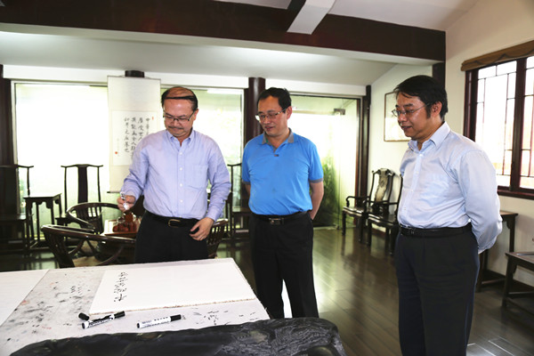 中国文化书院常务副院长张清教授、副院长罗同兵副教授带领客人参观书院并详细介绍书院相关情况。雷风云副司长参观了书院孔子铜像、“贵山书院”碑刻、贵州文化教育鼻祖尹珍塑像、勉学堂、游艺轩、励道楼、合一亭、涵远读书楼、仁文厅等处。