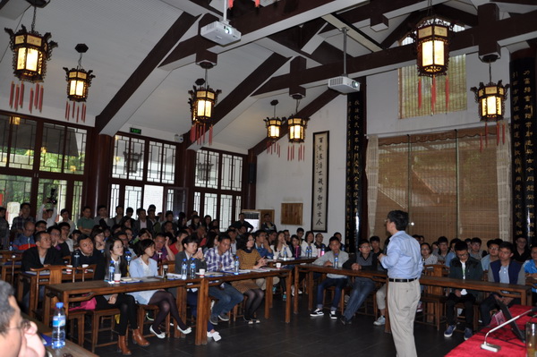 本网讯(新闻中心 余虹 报道|摄影 梁源)2015年5月5日上午,应学院邀请,贵州大学校长郑强在中国文化书院勉学堂为公共管理学院师生作了主题为“中国梦 ,中华复兴之梦”的讲座。讲座由公共管理学院院长黄其松主持报告,院党委书记李波、副书记刘明锋以及公共管理学院的师生代表、在我校进修的广东顺德区人民法院培训班的全体学员近百人聆听了讲座。