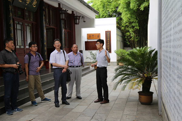 2015年7月23日,在与贵州大学人文学院新闻系部分教师举行交流座谈之后,浙江传媒学院副院长沈兵虎研究员一行在贵州大学副校长赵德刚教授、人文学院院长庄勇教授陪同下参观中国文化书院。中国文化书院常务副院长张清对沈兵虎副院长一行到来表示热烈欢迎,并就书院发展情况向客人们做了简要介绍。中国文化书院办公室助理张军兴带领客人一行先后参观了中国文化书院孔子铜像、贵山书院石刻、贵州教育文化鼻祖尹珍塑像、“中国文化书院学规”石刻、《礼运 大同篇》石刻、“中国文化书院书院条规”木刻、勉学堂、孔子“圣绩图”、游艺轩、励道楼、琴轩、合一亭、涵远读书楼、传习室、仁文厅等处。沈兵虎副院长一行对贵州大学中国文化书院优雅、宁静的科研环境,严谨、厚重的学术氛围和所彰显出的中国优秀传统文化内在精神品质,表示由衷的赞叹。