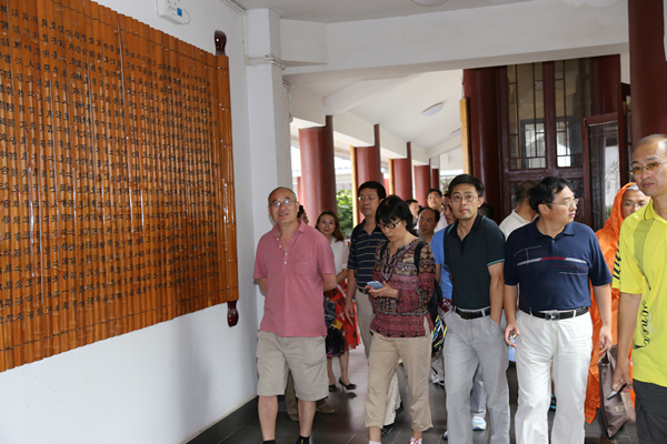 2015年7月29日,“2015年管理科学与工程类学科教师培训研讨会”期间,与会专家在贵州大学管理学院相关领导、老师的陪同下参观了贵州大学中国文化书院。中国文化书院办公室助理张军兴引领大家先后参观了贵州大学中国文化书院孔子铜像、贵州教育文化鼻祖尹珍塑像、贵山书院石刻、“礼运·大同篇”石刻、勉学堂、孔子圣绩图、游艺轩、励道楼、琴轩、合一亭等处。