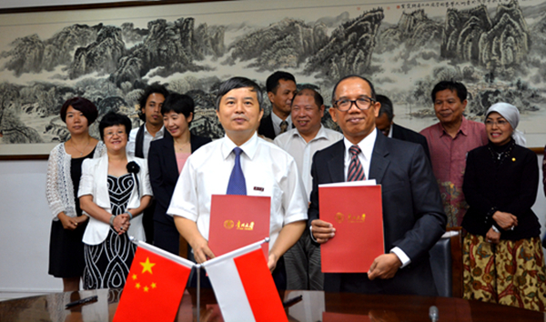 另据贵州大学新闻网报道,代表团访问学校期间,学校在北校区行政楼第一会议室召开座谈会及双方合作签字仪式。我校副校长宋宝安、赵德刚,国际交流与合作处相关负责人出席会议。宋宝安副校长代表学校与印尼代表团校签署了10份校际友好交流合作协议,并互换礼物。我校相关部门负责人与印尼代表团就双方关心的交换生教育、实习、奖学金等问题展开讨论。