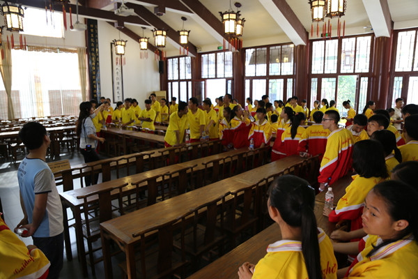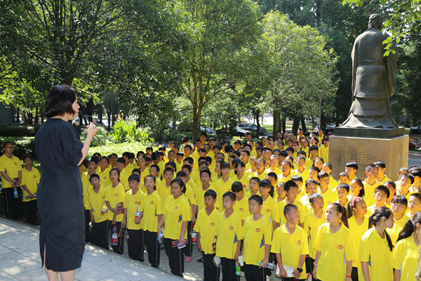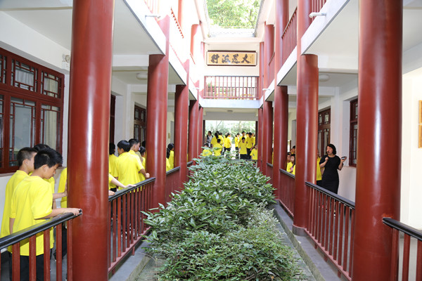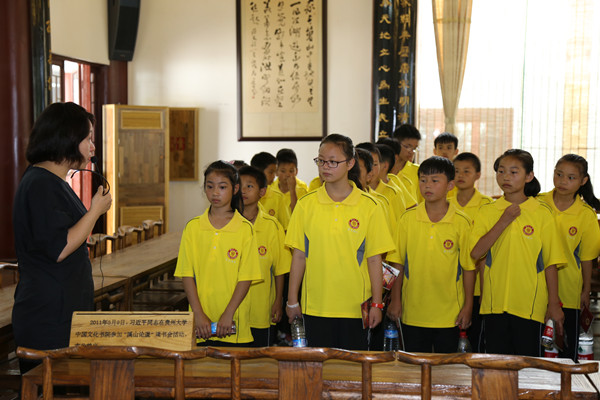 2015年8月22日上午,贵州大学附属中学组织初、高中部的全体新生,共十三个班级800余人参观中国文化书院。贵州大学中国文化书院办公室主任罗旋对贵大附中老师和同学们的到来表示热烈欢迎,并与办公室助理李颖一道带领新生们参观书院并讲解中国传统文化。