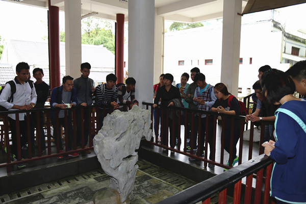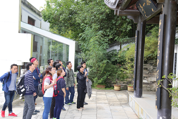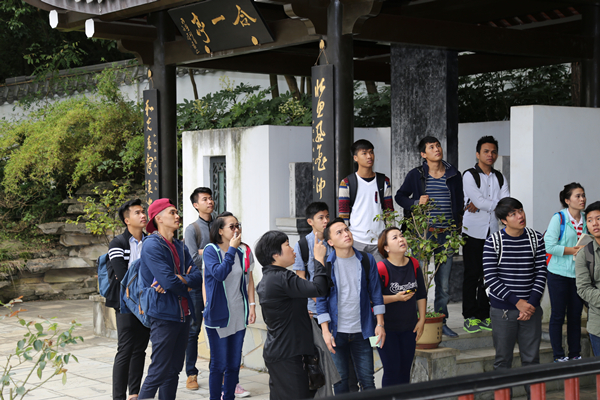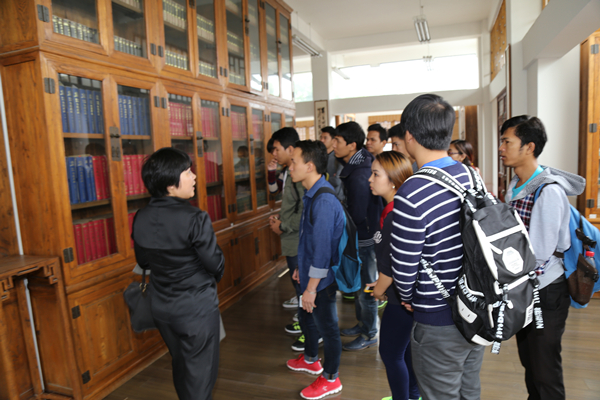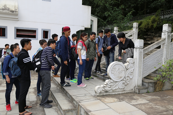 2015年9月29日上午,贵州大学国际教育学院“政府奖学金班”来自老挝、柬埔寨、泰国等东盟国家的15位留学生同学,在任课教师、人文学院中文系李青副教授的带领下,来到中国文化书院进行现场参观学习。与其他参观者不同,留学生同学们对书院楹联和匾额上的汉字特别感兴趣,在每一幅作品前都认真辨认和学习。