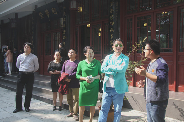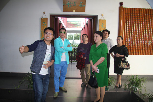 在贵州大学中国文化书院办公室主任罗旋、办公室助理陈亮带领下,艺术家们逐一听取相关介绍,品读中国文化书院传统文化与艺术特色浓郁的内外环境、建筑风格、雕塑石刻、传统字画。