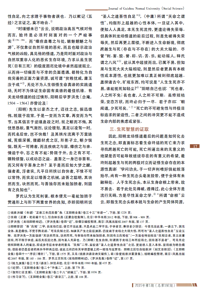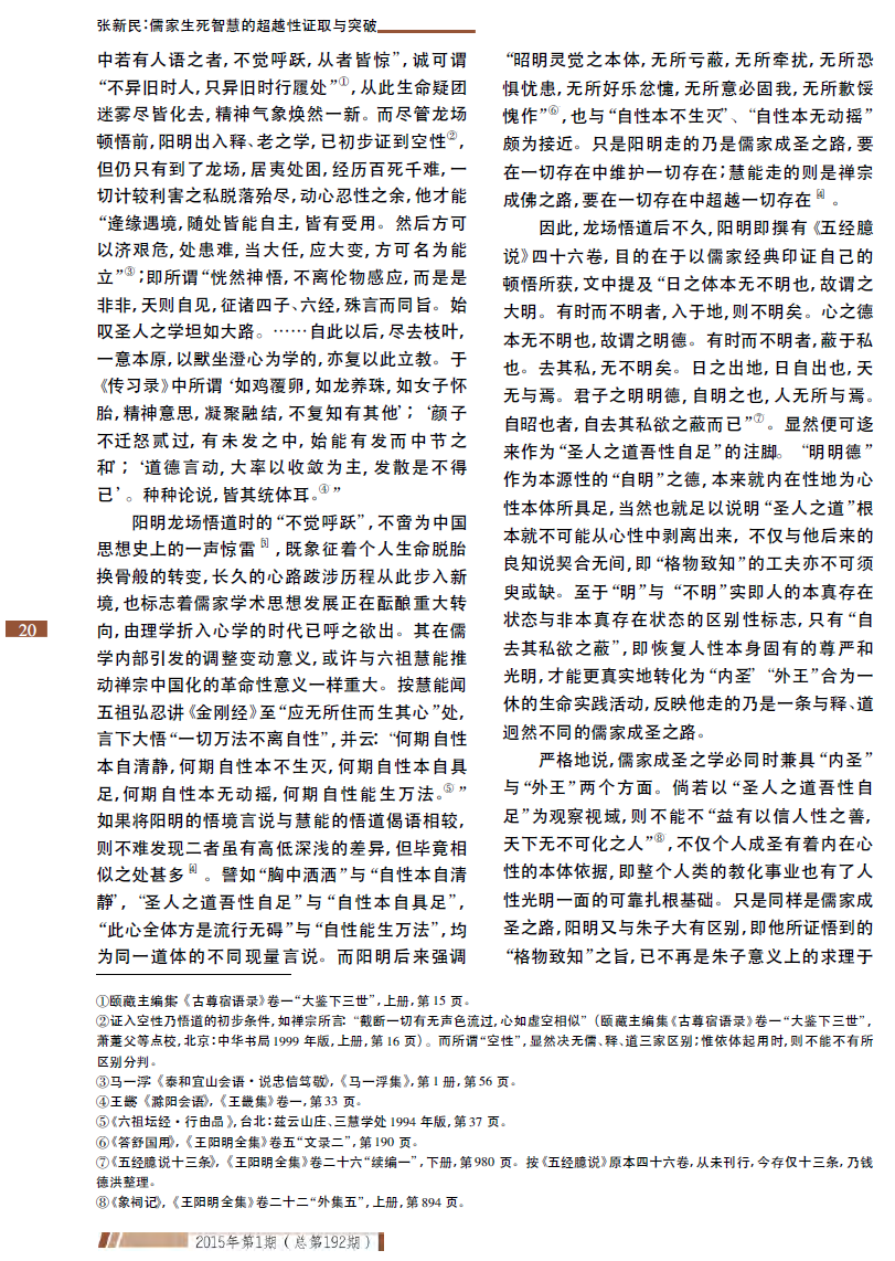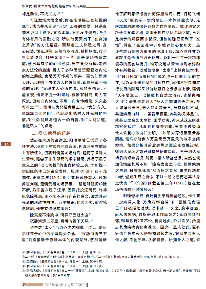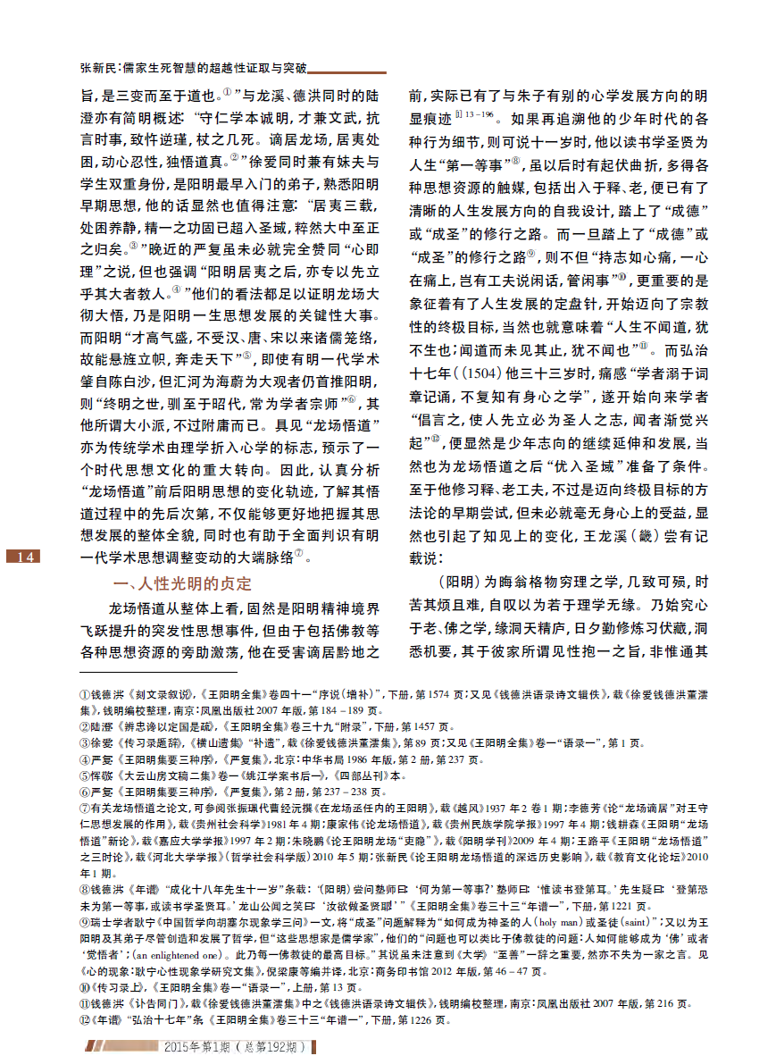 张新民:儒家生死智慧的超越性证取与突破——王阳明龙场悟道新论