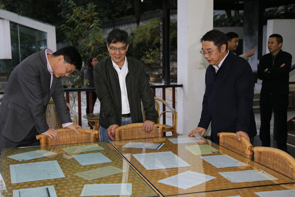 2015年11月10日下午,国家财政部驻贵州财政专员办事处监察专员余功斌、财政部驻贵州财政监察专员办事处业务二处处长蒋声昊、财政部驻贵州财政监察专员办事处主任科员王韬,在贵州大学总会计师谢田凯,贵州大学校长助理、发展规划处处长林岚涛,贵州大学财务处处长王斌及发展规划处副处长冉光圭等陪同下参观中国文化书院。