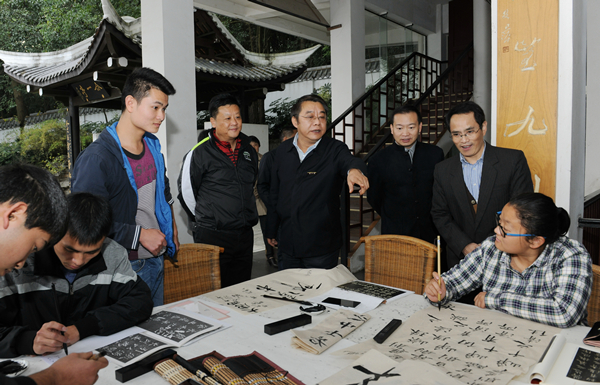 在中国文化书院勉学堂、书院赋竹刻、游艺轩、励道楼、合一亭等处,检查组对贵州大学中国文化书院浓郁的中华传统文化氛围留下深刻印象;在书院研究成果陈列室,检查组对书院在中国文化大、小传统与贵州地方文化相关方面的研究成果予以充分肯定;在书院琴轩、仁文厅和涵远读书楼,检查组还驻足观赏了学校学生的古乐演奏、书法练习与作品展示。
