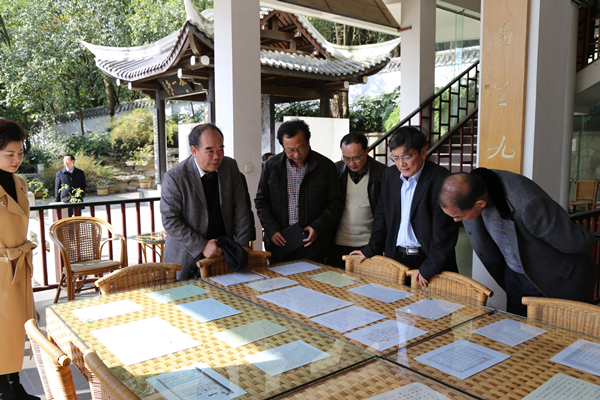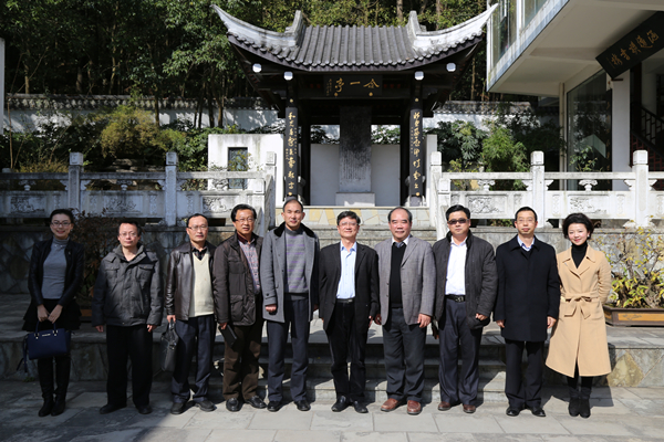 参观结束,林萍华教授、史焕平教授在书院仁文厅题字留念,并在书院合一亭与郑强校长等学校领导合影留念。