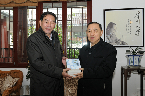 在书院仁文厅,杨志明主任愉快地接受陈坚书记所赠送的贵州大学中国文化书院大型学术辑刊《阳明学刊》全套,对学校高度重视文化建设及中国文化书院传承与弘扬中华优秀传统文化的相关作为予以充分肯定。