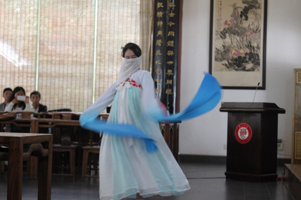 首先,贵州大学“国学社”带来诗经唱诵节目——《诗经·郑风·子衿》。该节目的含义是:鼓励那些尚未加入社团的同学主动成为“国学社”的一员,共同致力于经学的研习与礼乐文明的传承与弘扬。
