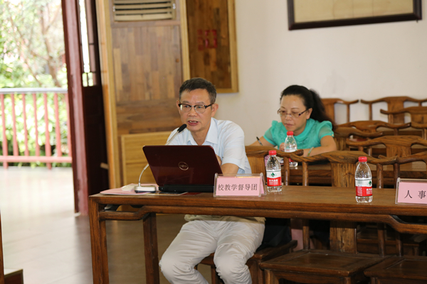 教务处处长邓朝勇教授对本科生参加相关学科竞赛、成立教育教学评估督导组、各级各类教改项目立项、教学实习基地清查、本科专业综合评估等情况进行通报。同时,他就近期本科教学审核评估相关工作特别是教学管理体系梳理、教学档案核查、实习实践环节清理、审核评估工作人员抽调等进行安排部署。