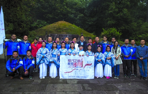图为采访团在王阳明墓前合影图片来源:《贵阳日报》2016-10-16