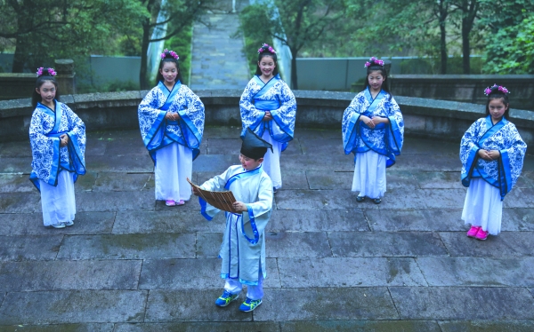 图为绍兴阳明小学的学生在祭奠仪式上朗诵诗歌《吾心光明》图片来源:《贵阳日报》2016-10-16