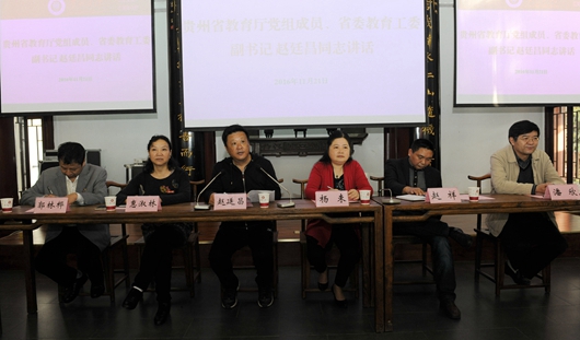 贵大新闻网讯(文字 丁龙 摄像 陈恒)11月21日上午,2016年贵州省高校辅导员培训班开班典礼在我校中国文化书院举行。省教育厅党组成员、省委教育工委副书记赵廷昌,校党委副书记杨未出席开班典礼,来自全省的近80名辅导员参加本期培训。