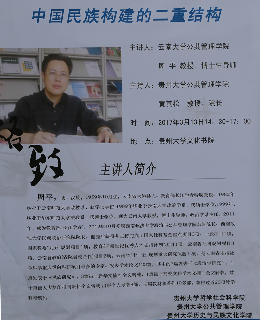 历史与民族文化学院(中国文化书院)“贵山论坛”(第109期)学术讲座:中国民族构建的二重结构