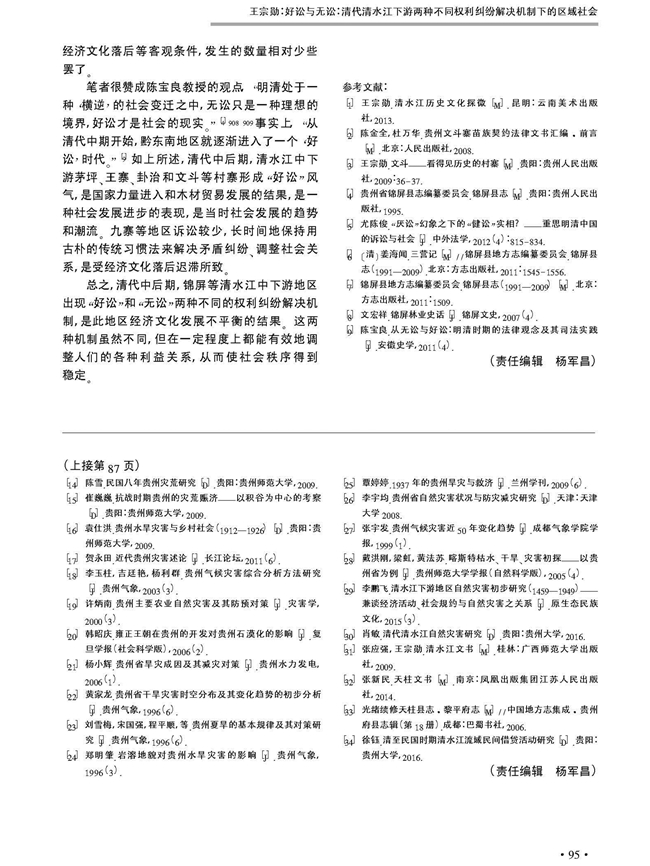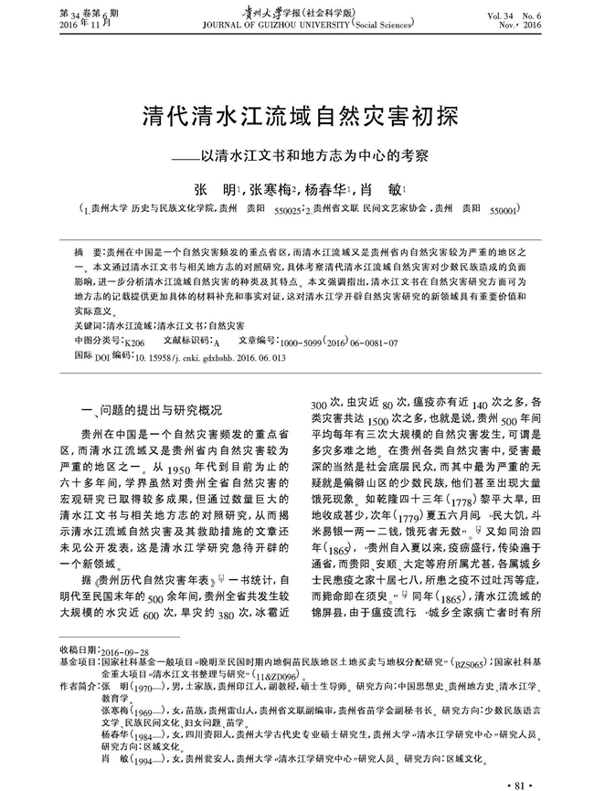 《贵州大学学报》刊载张明等“清代清水江流域自然灾害初探”