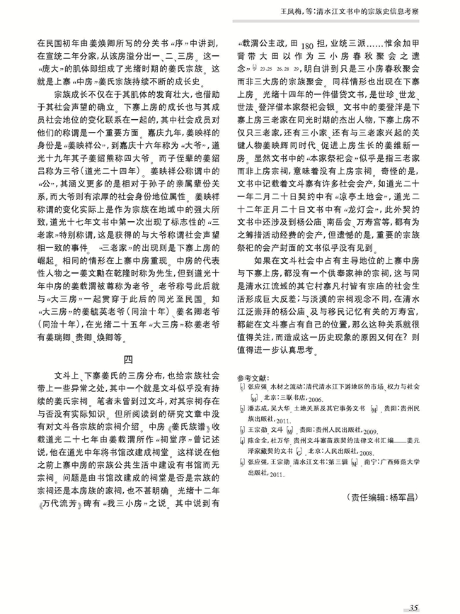 2017年2月第35卷第1期《贵州大学学报》(社会科学版)刊载贵州大学历史与民族文化学院(中国文化书院)王凤梅副教授及林芊教授等“清水江学”研究论文。全文如下: