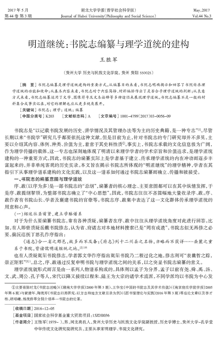 《湖北大学学报》2017年5月第44卷第3期刊载贵州大学历史与民族文化学院副教授、贵州大学-孔学堂中华传统文化研究院研究员王胜军博士论文。全文如下: