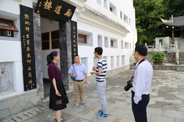 进入书院内院后,办公室人员向客人介绍了孔子圣迹图、书院赋、游艺轩、励道楼,合一亭、涵远读书楼、仁文厅等,并向客人解释了其中蕴含的中国传统文化精神。