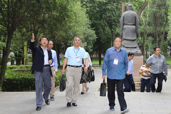 专家组一行先后参观了中国文化书院中华儒家文化象征先师孔子铜像、贵州教育文化鼻祖尹珍先生塑像、贵州大学前身“贵山书院”石刻,以及书院勉学堂、“书院赋”竹刻、游艺轩、励道楼、琴轩、书院学术成果陈列室、“阳明文化”石刻、合一亭等传统文化设施与陈列。