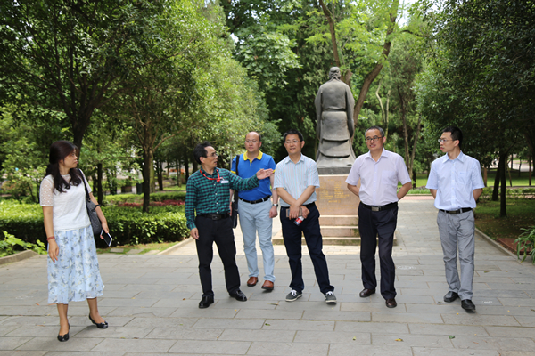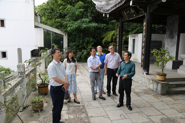 2017年6月21日,电子科技大学外国语学院冯文坤院长、楚军副院长一行五人到贵州大学中国文化书院参观调研。贵州大学文学与传媒学院副院长、中国文化书院原副院长刘振宁,贵州大学历史与民族文化学院(中国文化书院)副教授朱兵、办公室副主任马益英及办公室研究生助理俞智法陪同客人参观了书院内外传统文化设施与陈列。