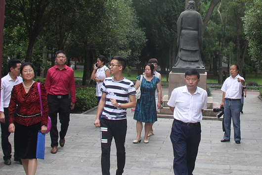 2017年8月9日上午,来校检查并指导我校全国文明校园创建工作的省文明办三处处长连立梅、省教育厅社政处副处长赵祥一行,在贵州大学校党委副书记骆长江、校党委宣传部部长杨楠、副部长石明昌及唐娟等陪同下考察贵州大学中国文化书院并指导工作。