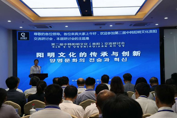 2017年8月18日,由阳明文化(贵阳)国际文献研究中心主办的第二届中韩阳明文化(贵阳)交流研讨会在阳明文化(贵阳)国际文献研究中心举行。来自韩国各相关高校及机构,来自中国贵州省社会科学院、贵州大学、贵州师范大学、贵州阳明文化研究院、阳明学研究中心,贵阳市教育局、贵阳市文化新闻出版广电局、贵阳学院、贵阳孔学堂、修文县以及贵阳市黔阳明文化产业发展有限公司等单位的领导、专家学者,阳明文化(贵阳)国际文献研究中心的研究人员,以及来自新华社、人民网、贵州日报、贵州电视台、贵阳日报、贵阳电视台等30余家中央及省市媒体的朋友齐聚一堂,通过主题演讲、对话交流的形式,为阳明文化的传承与创新建言献策。