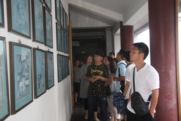 在书院勉学堂北墙及书院崇德室,宾主一起共同观赏记载孔子一生栖栖惶惶、奔走各国、传播价值理想、弘宣仁爱精神的“孔子圣绩”图,体会孔德成先生特意为贵州大学中国文化书院题写“崇易尚儒自由颂 有教无类民主风”楹联的深远寓意,感受日本著名阳明学者冈田武彦先生特意题字中所承载对中国明代先贤王阳明先生的敬仰之情。在取意“以文会友”“以友辅仁”的书院会客与文化交流之地仁文厅,绍兴客人还详细考察了仁文厅的文化陈设与其内涵,了解到国家领导人、中外文化名家对贵州大学及中国文化书院的亲切关怀与殷殷厚爱。