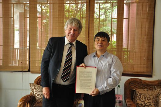 宋宝安和Wolf-Dieter Rausch主席共同签署了合作交流意向书,我校正式加入欧亚-太平洋大学联盟。