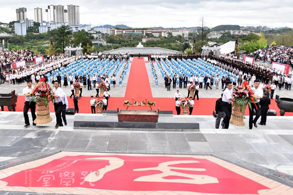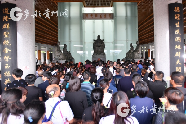 贵州省省委教育工委书记、教育厅党组书记、厅长王凤友;贵阳孔学堂文化传播中心党委书记、理事会理事长、教授、博士生导师徐圻;多彩贵州网有限责任公司党委书记、董事长,孔学堂理事会常务理事晏世忠;贵州省委宣传部秘书长黄浩;贵阳市人大常委会副主任刘俊、市政协副主席邓胜龙;贵州省儒学会会长、贵州大学中国文化书院荣誉院长、学者代表张新民教授;贵阳孔学堂文化传播中心党委委员、副主任周之江向先师孔子敬献花篮。