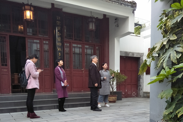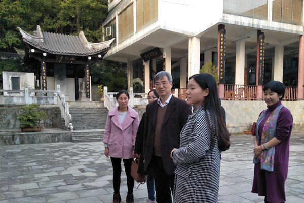 2017年11月29日,在贵州大学外国语学院院长周杰教授陪同下,上海外国语大学博士生导师梅德明教授等一行到校交流访问。贵州大学中国文化书院负责人对客人一行到访表示热烈欢迎并就中华优秀传统文化的基本特质与中外文化交流互鉴进行愉快交谈,办公室研究生助理带领客人一行参观中国文化书院内外文化环境与文化设施。