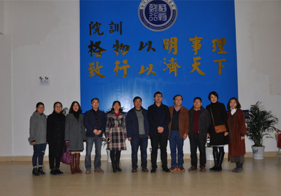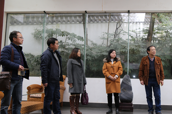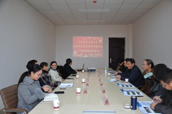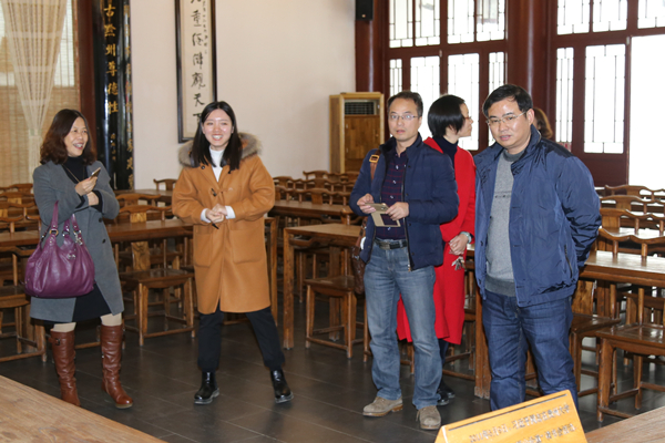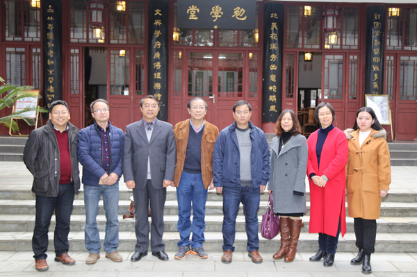 2017年12月4日下午,重庆工商大学社会与公共管理学院原院长、社会学市级学术技术带头人徐宪,社会与公共管理学院党委书记张毅、副院长侯明喜及邓蓉教授等专家一行到贵州大学公共管理学院交流访问。访问期间,为进一步完善重庆工商大学“南山书院”的文化内涵建设,重庆工商大学专家一行在赴贵州省修文县王阳明龙场悟道之地了解学习阳明文化及参观贵阳孔学堂之后又专赴贵州大学中国文化书院访问参观。中国文化书院负责人及办公室工作人员对客人一行到访表示热烈欢迎并介绍书院的历史发展与现状、传统文化学术研究、文化交流与文化传承情况。