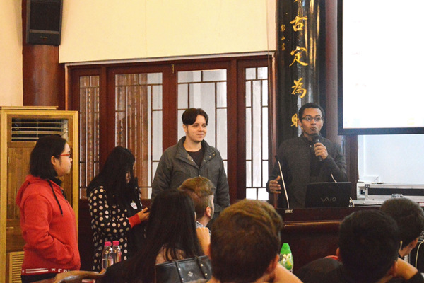 在通过轻松愉快的小游戏互动迅速拉近中外同学间距离之后,中美学生就双方各自感兴趣的话题轮流进行沟通与互动。中国学生以PPT展示为主并穿插小视频、芦笙吹奏等丰富多样的形式,向代表团成员介绍了中国的高考、在校大学生课余生活、贵州少数民族风土人情与地方特色美食、理想的工作及行业发展前景、大数据产业在贵州的发展状况、城市化建设的影响以及对留守儿童的看法。